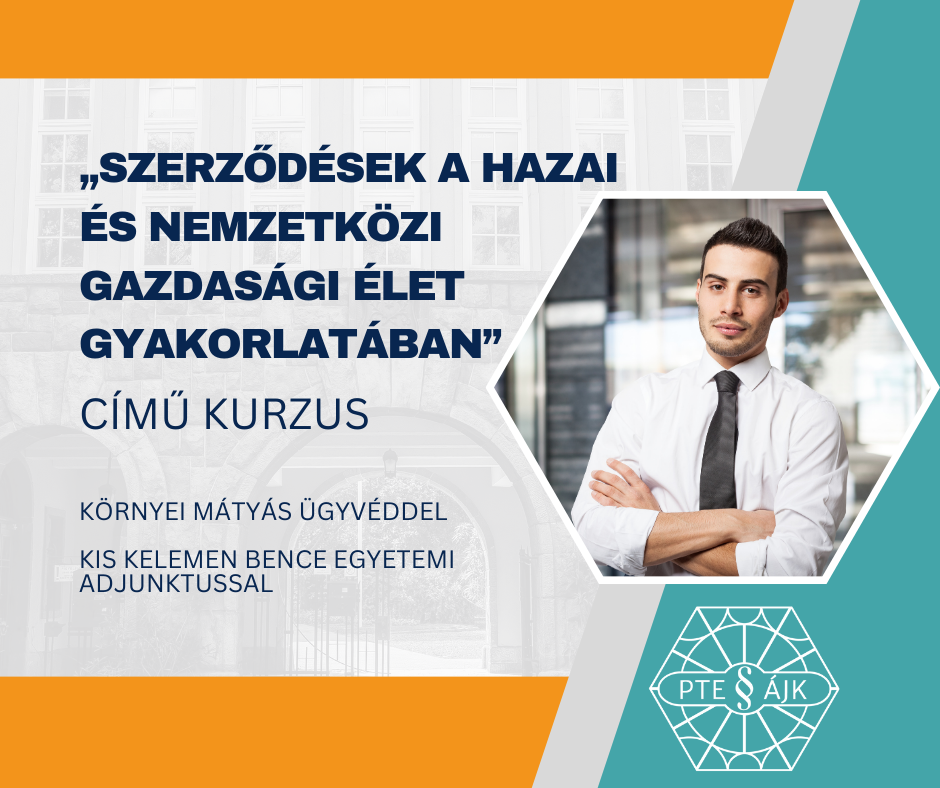 A pécsi jogi kar számára mindig is fontos volt, hogy naprakész és gyakorlatorientált jogászképzést valósítson meg. Ennek egy újabb elágazása a Nemzetközi- és Európajogi Tanszék szervezésében meghirdetésre kerülő „Szerződések a hazai és nemzetközi gazdasági élet gyakorlatában” című kurzus, amelyet Környei Mátyás ügyvéd és óraadó, valamint Kis Kelemen Bence egyetemi adjunktus és ügyvéd tartanak.