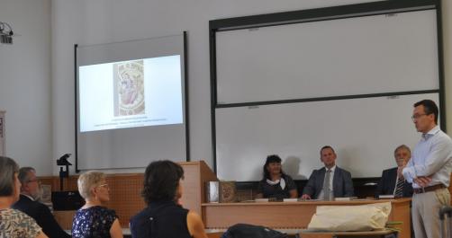 Köszöntő szavaiban Prof. Dr FedelesTamás oktatási rektorhelyettes, a PTE Centenáriumi Programirányító Bizottság elnöke emlékezett a Kar 2019-ben elhunyt nemzetközi hírű jogtörténész professzorára. A jogtörténeti tanszéket vezető, jogászok nemzedékei által tisztelt jogtudós, a kiváló kolléga, a kar- és egyetemtörténeti tanulmányokat is jegyző pécsi professzor alakját Dr. Fábián Adrián dékán idézte.