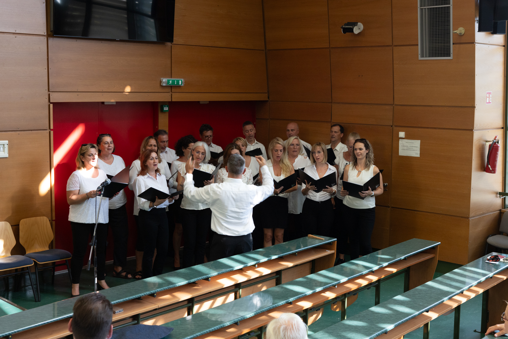 Ahogy a centenáriumi év mottója is tartja, „Múltból a jövő felé”, az ünnepi események sora is ezt az ívet követte. A múlt méltatása után a pénteki programon a jövő rejtélyes szelete, a mesterséges intelligencia került fókuszba. Ezen a napon is méltó helyet kapott a jogászi hivatás mellett a művészet, a zene. A Vox Iustis a Pécsi Törvényszék kórusa dr. Horváth Attila karnagy vezetésével színvonalas koncerttel zárta a délutáni programot.