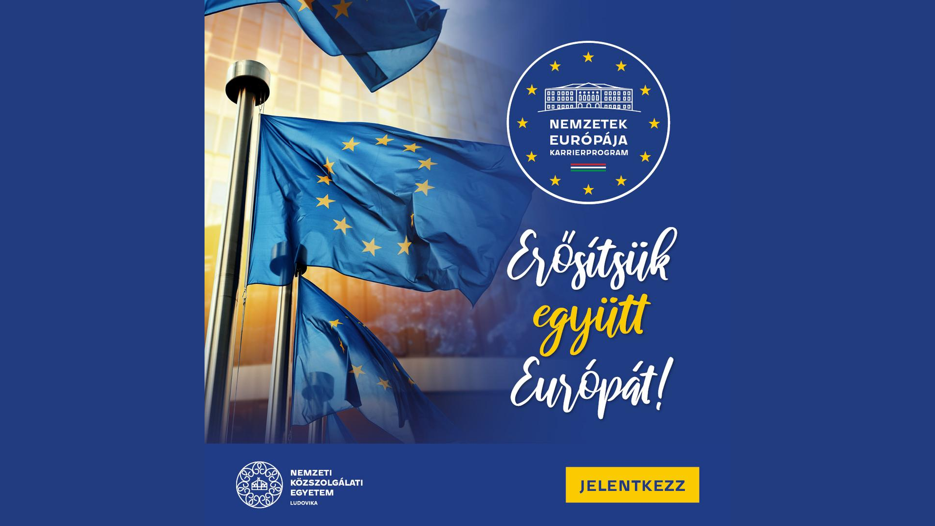 „Erősítsük együtt Európát!” mottóval, harmadik évfolyamát indítja ősszel a Nemzetek Európája Karrierprogram, melynek célja, hogy növelje az európai uniós intézményeknél sikeresen pályázó és elhelyezkedő, Európa és Magyarország ügye iránt egyaránt elkötelezett, idegen nyelveken jól beszélő, megfelelő szakpolitikai ismeretekkel rendelkező magyar szakemberek számát. A Nemzeti Közszolgálati Egyetem (NKE) és az Igazságügyi Minisztérium (IM) együttműködésében megvalósuló, 2022. szeptemberben új évfolyammal induló, munka mellett elvégezhető, két szemeszteres programra május 31-ig lehet jelentkezni.