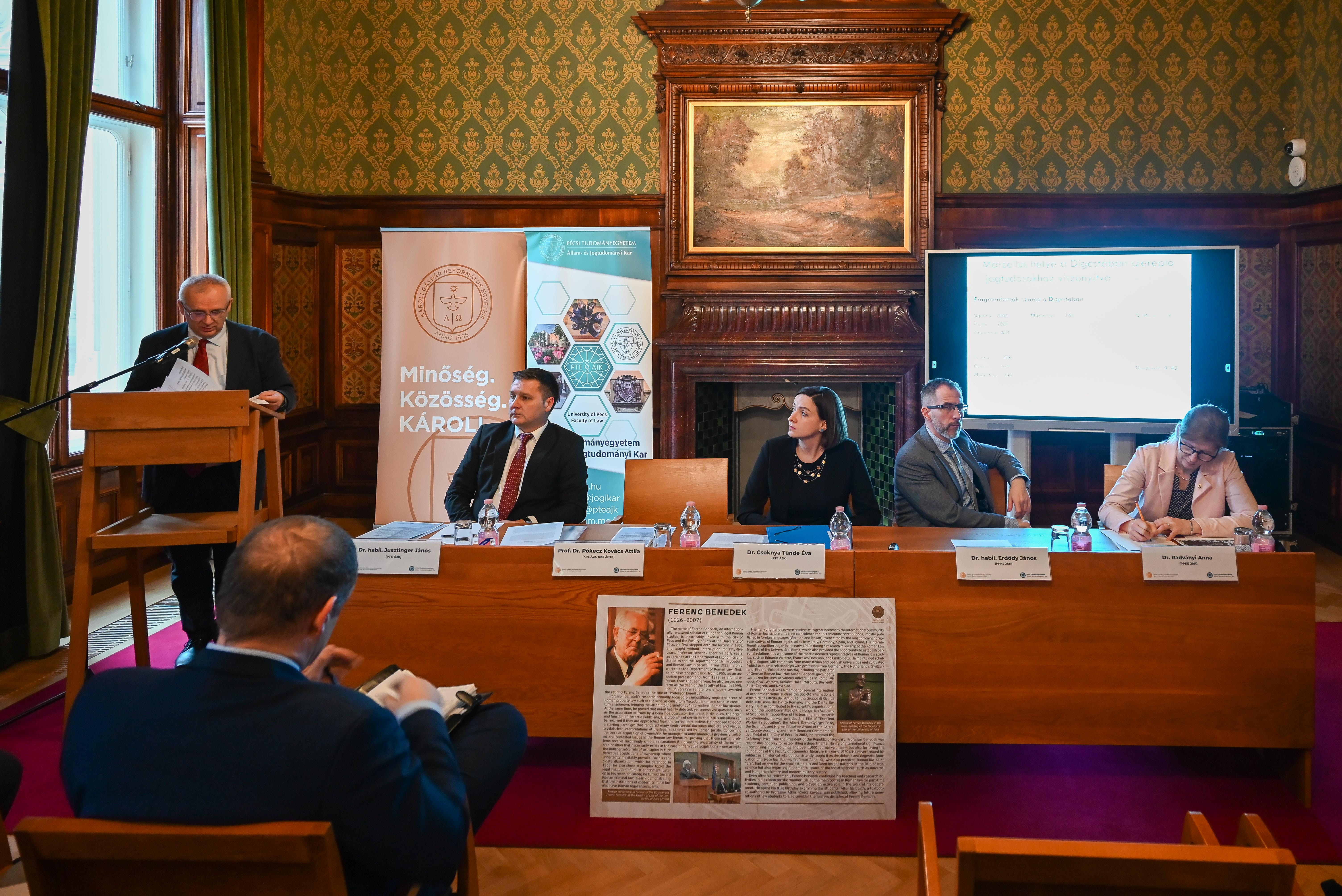 A Pécsi Tudományegyetem Állam- és Jogtudományi Kara a Károli Gáspár Református Egyetem Állam- és Jogtudományi Karával közös szervezésben rangos tudományos konferenciával emlékezett meg Benedek Ferencről, a pécsi jogi kar Széchenyi-díjas professzoráról születésének 100. évfordulója alkalmából.