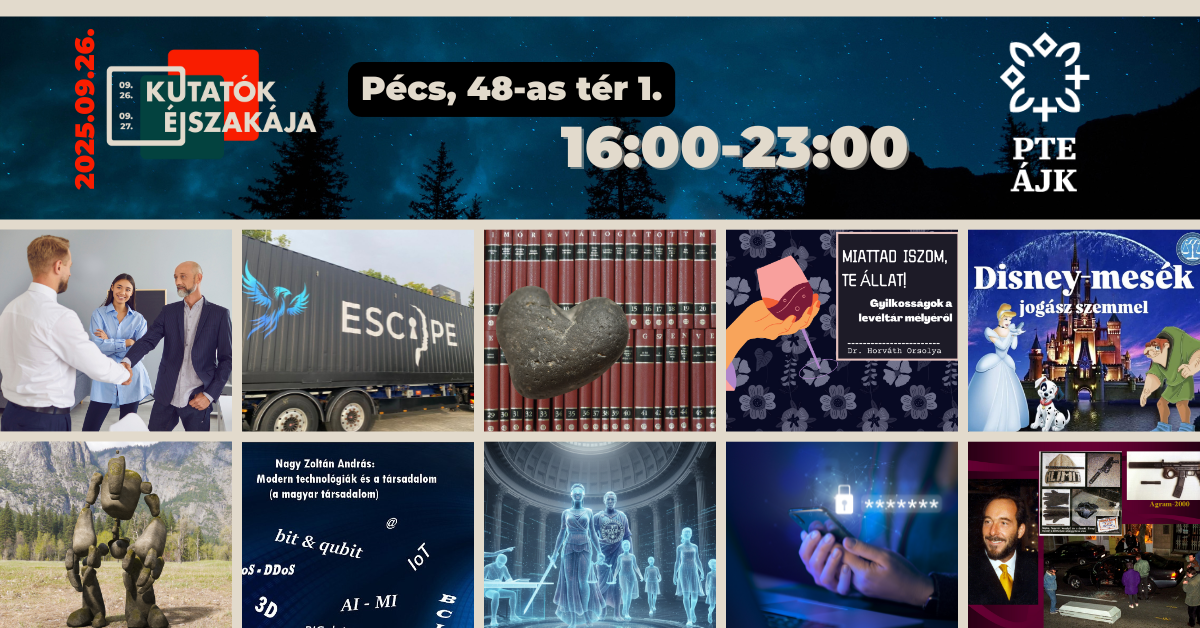 Szeptember 26-án, pénteken 16:00 és 23:00 óra között ismét várja az érdeklődőket a Pécsi Tudományegyetem Állam- és Jogtudományi Kara a Kutatók Éjszakája programjain.